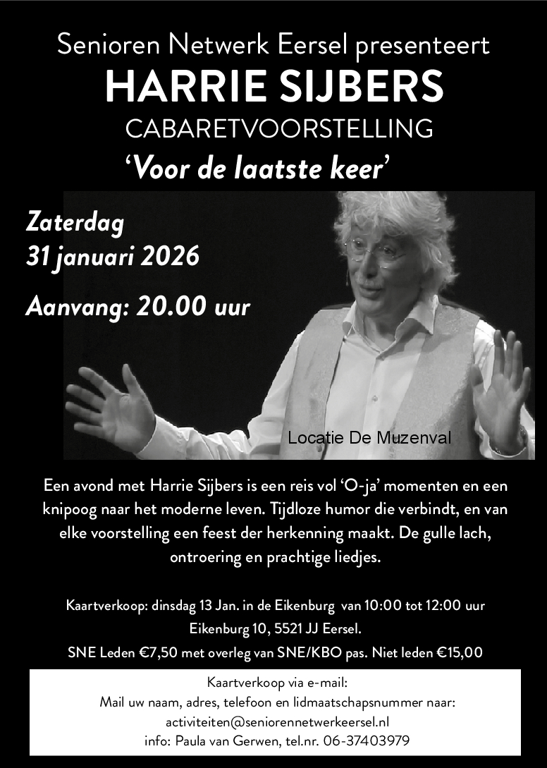 31jan8:00 pmCabaretvoorstelling Harrie SijbersSenioren Netwerk Eersel presenteert
