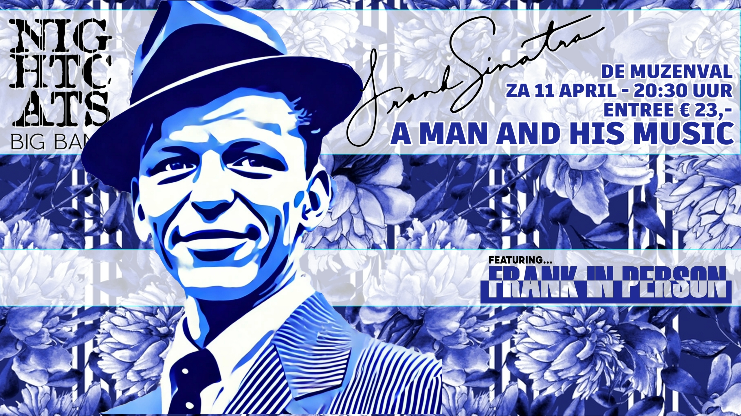 Frank In Person, die internationaal indruk maakte met zijn authentieke interpretaties, weet als geen ander de charme, timing en warmte van Sinatra te raken. Samen met de NightCats BigBand laat hij het publiek de magie van de gouden bigbandjaren opnieuw beleven.