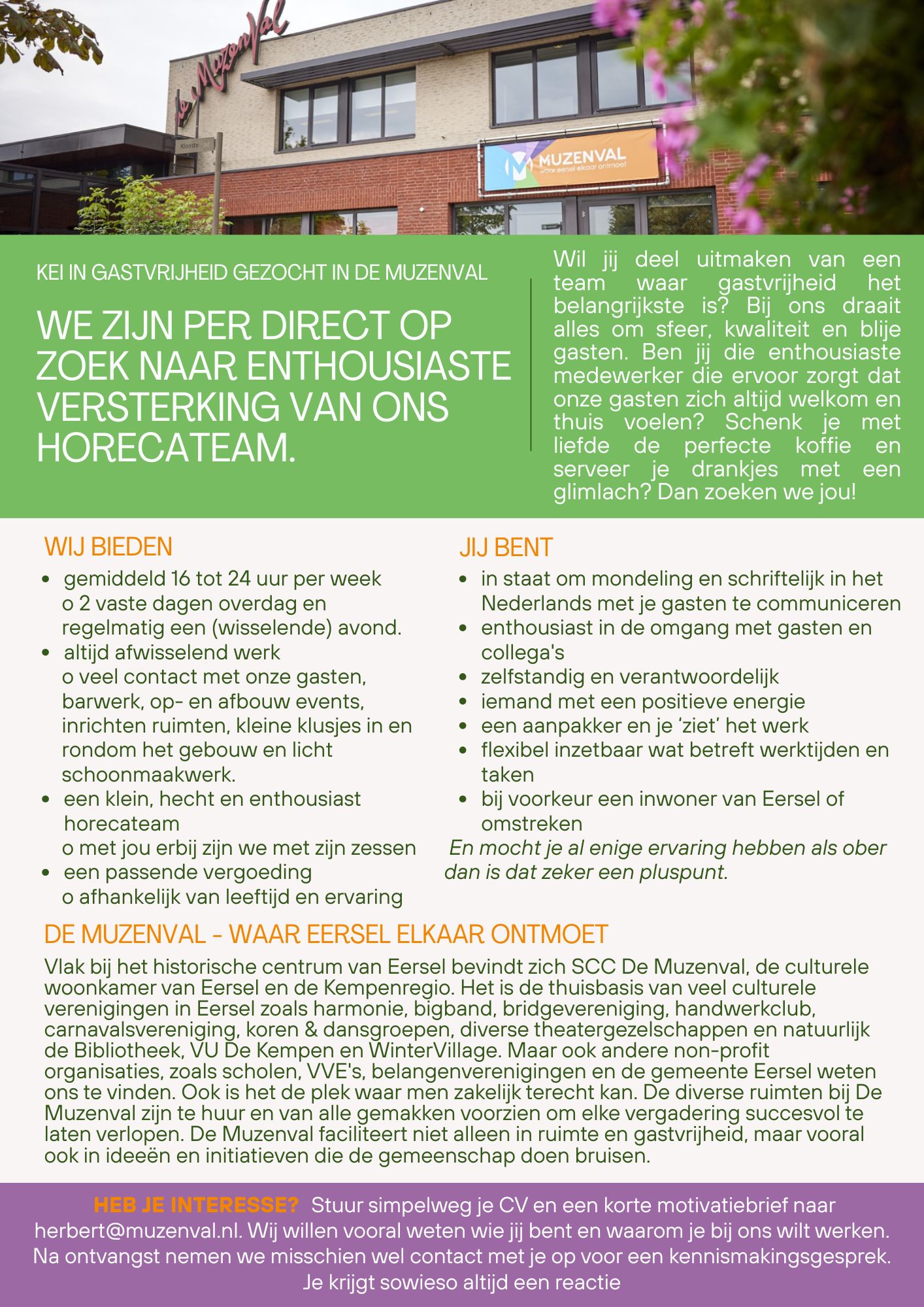 Reserveringen buiten vermelde openingstijden zijn mogelijk. Neem contact op via verhuur@muzenval.nl